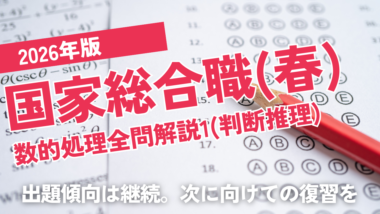 国家総合職の数的処理は、出題傾向が非常に明確です。 出題頻度や得点しやすいジャンルを中心に、過去問で全体像を掴みましょう。 難易度は年によって変動しますが、依然として公務員試験の中では最上位レベルです。